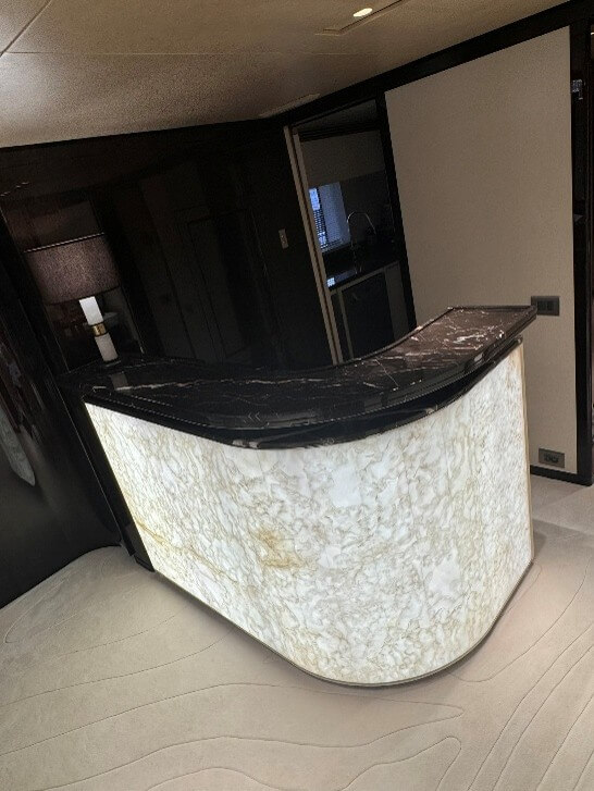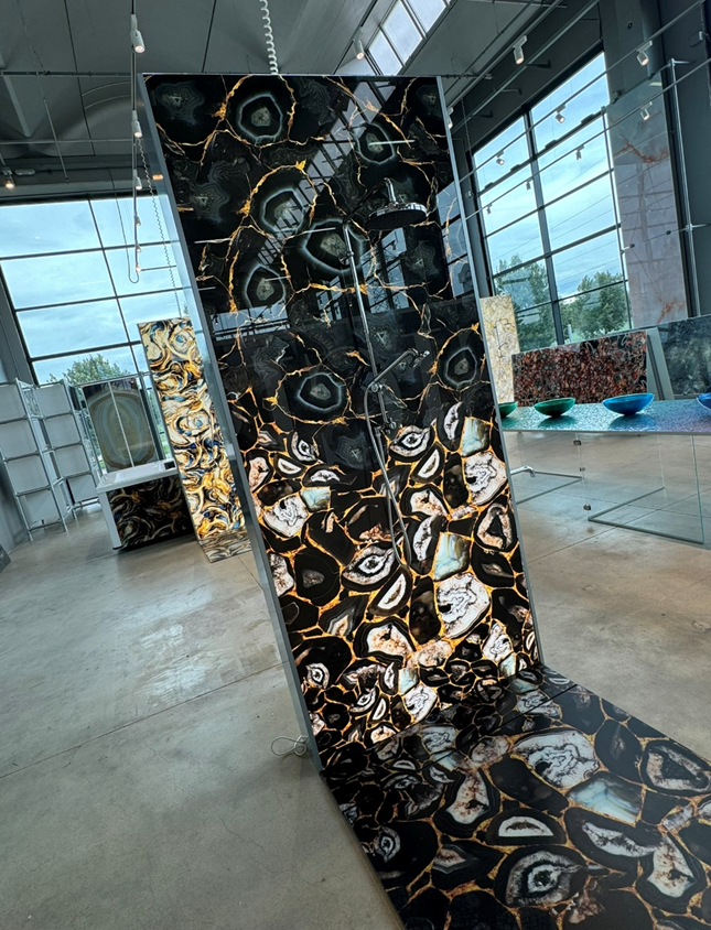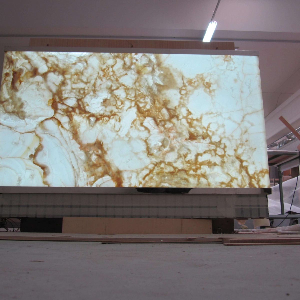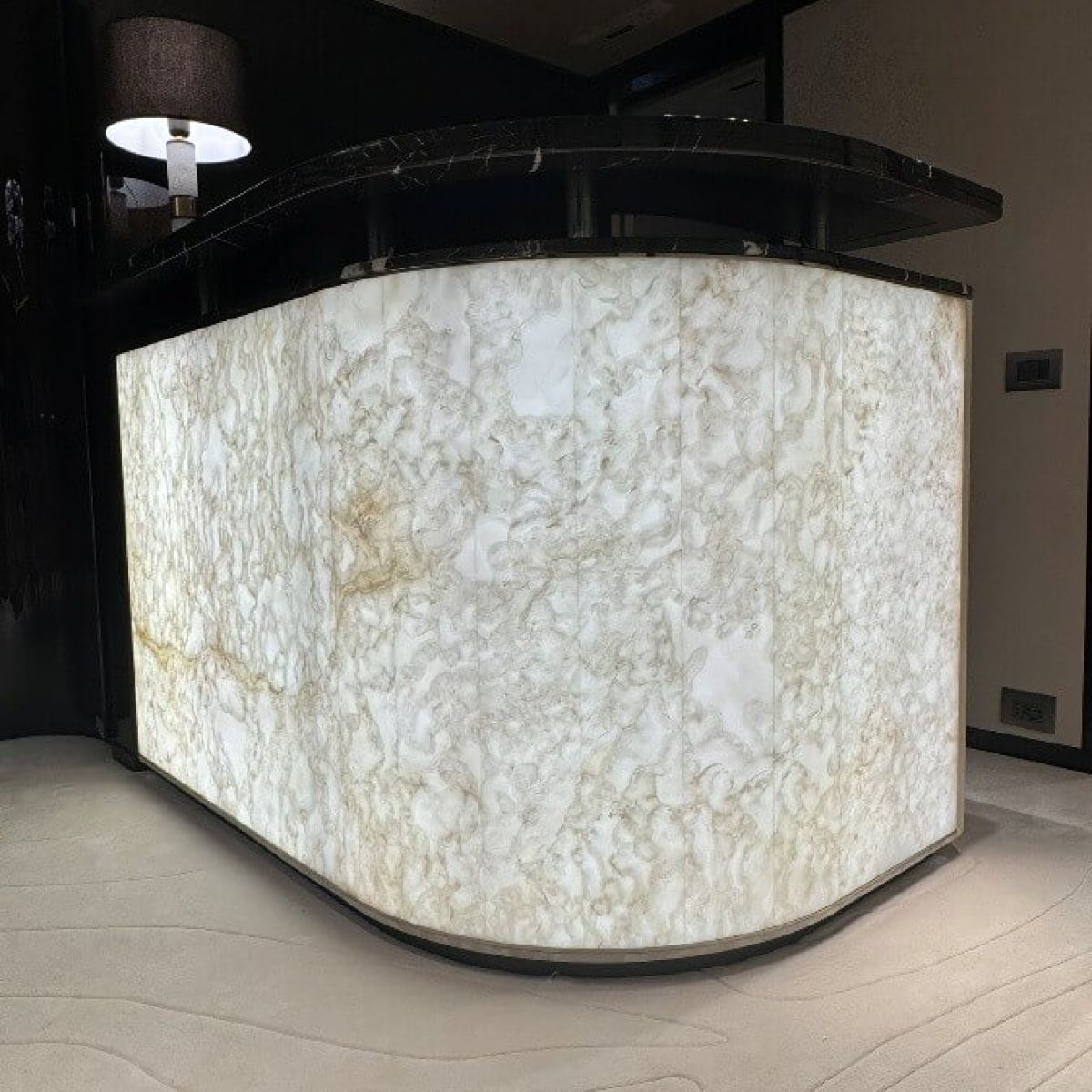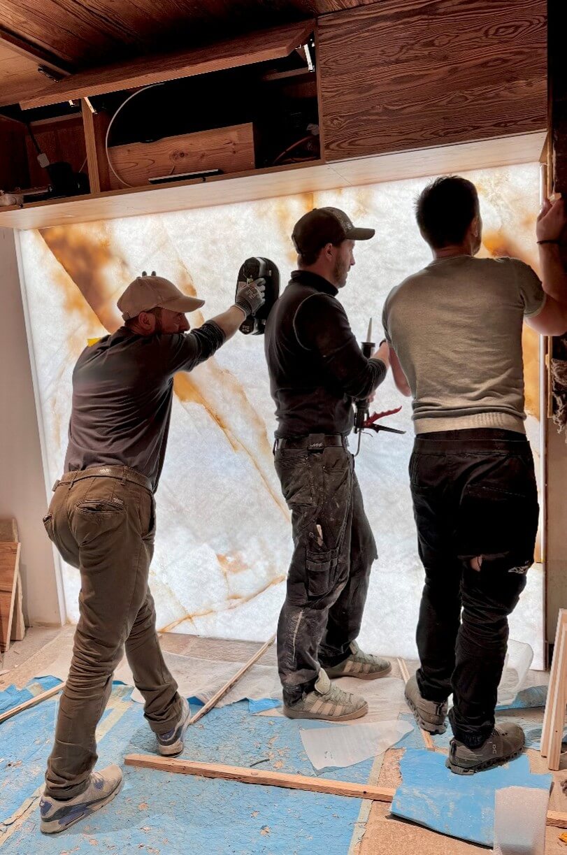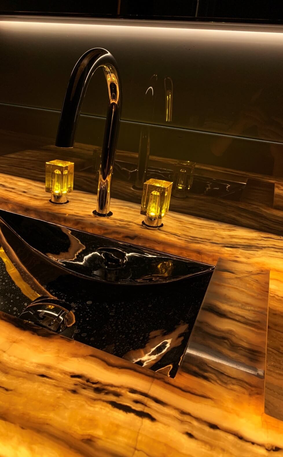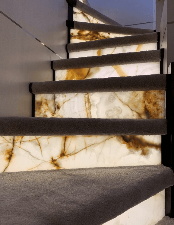 Natural and semi-precious stones such as marble, agate, quartz and onyx, or materials such as glass, decorative wallpaper, artistic mosaics, fabrics, resins and the like, are brought to life by light that passes through them, revealing their most hidden soul.