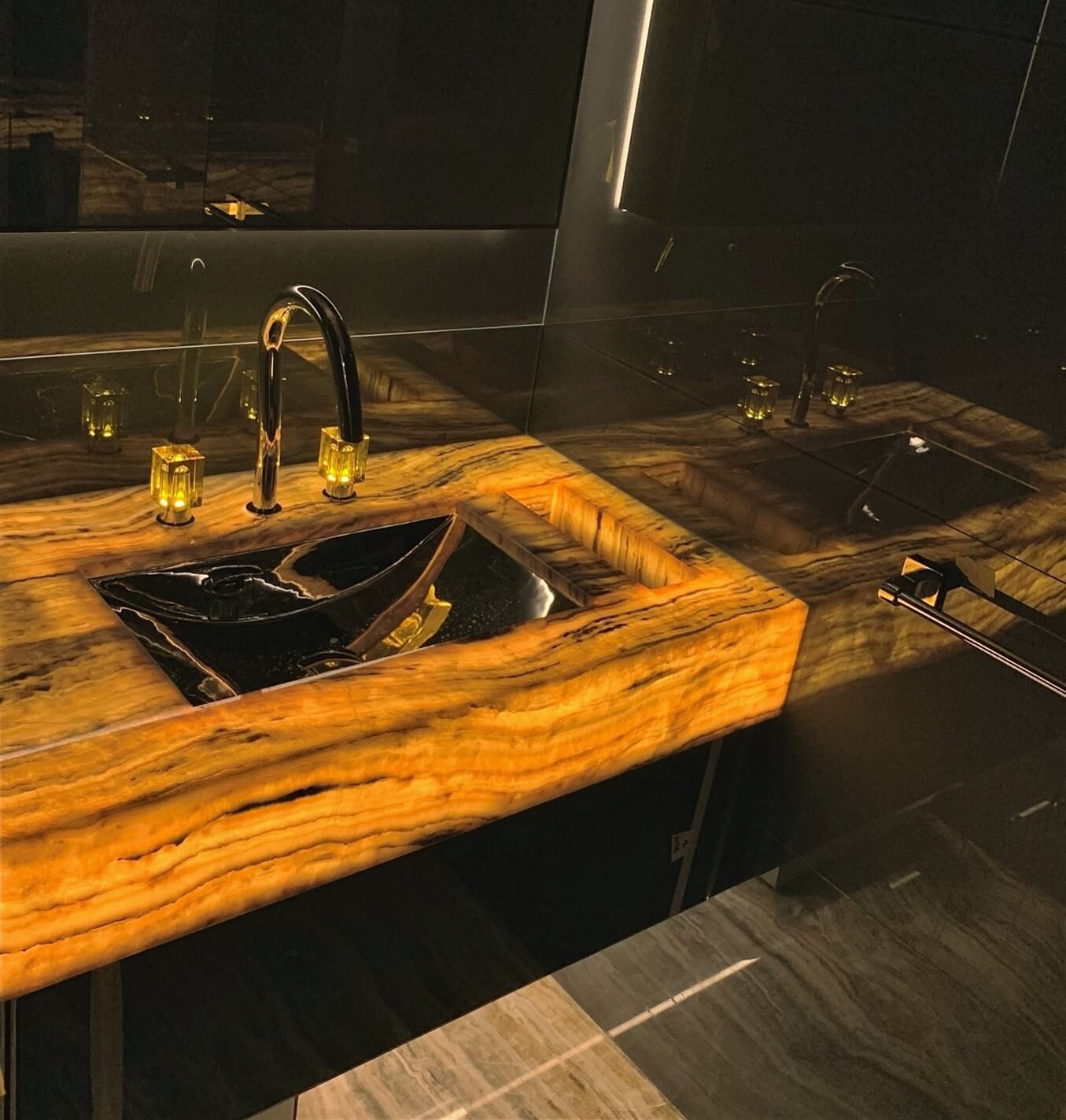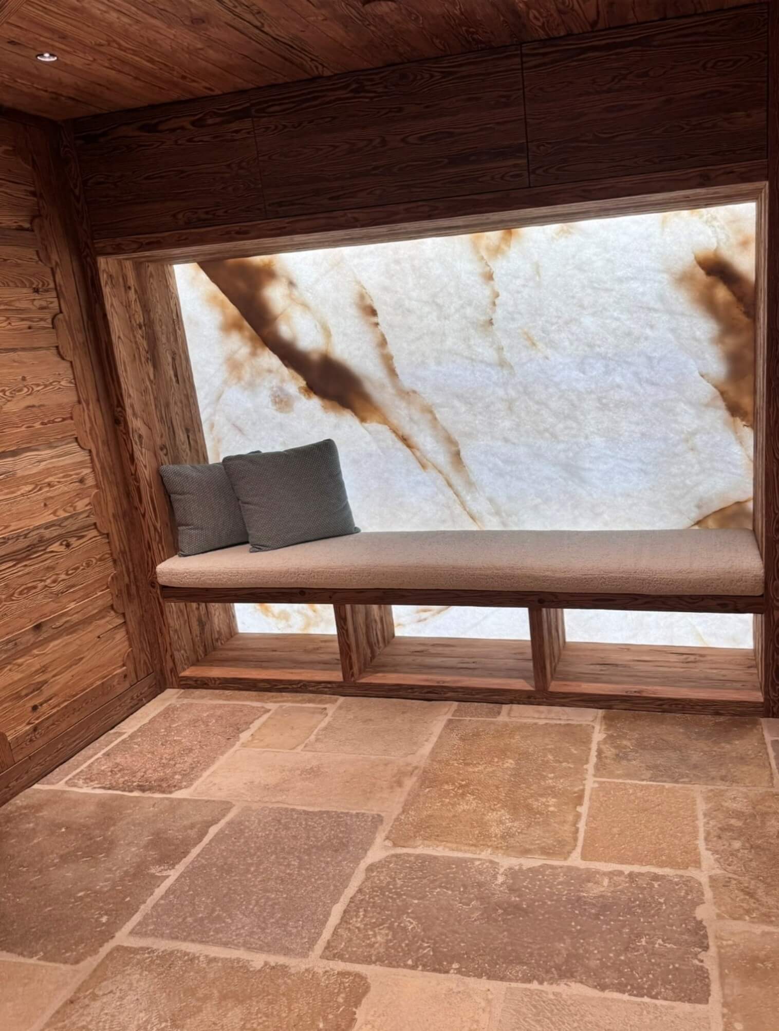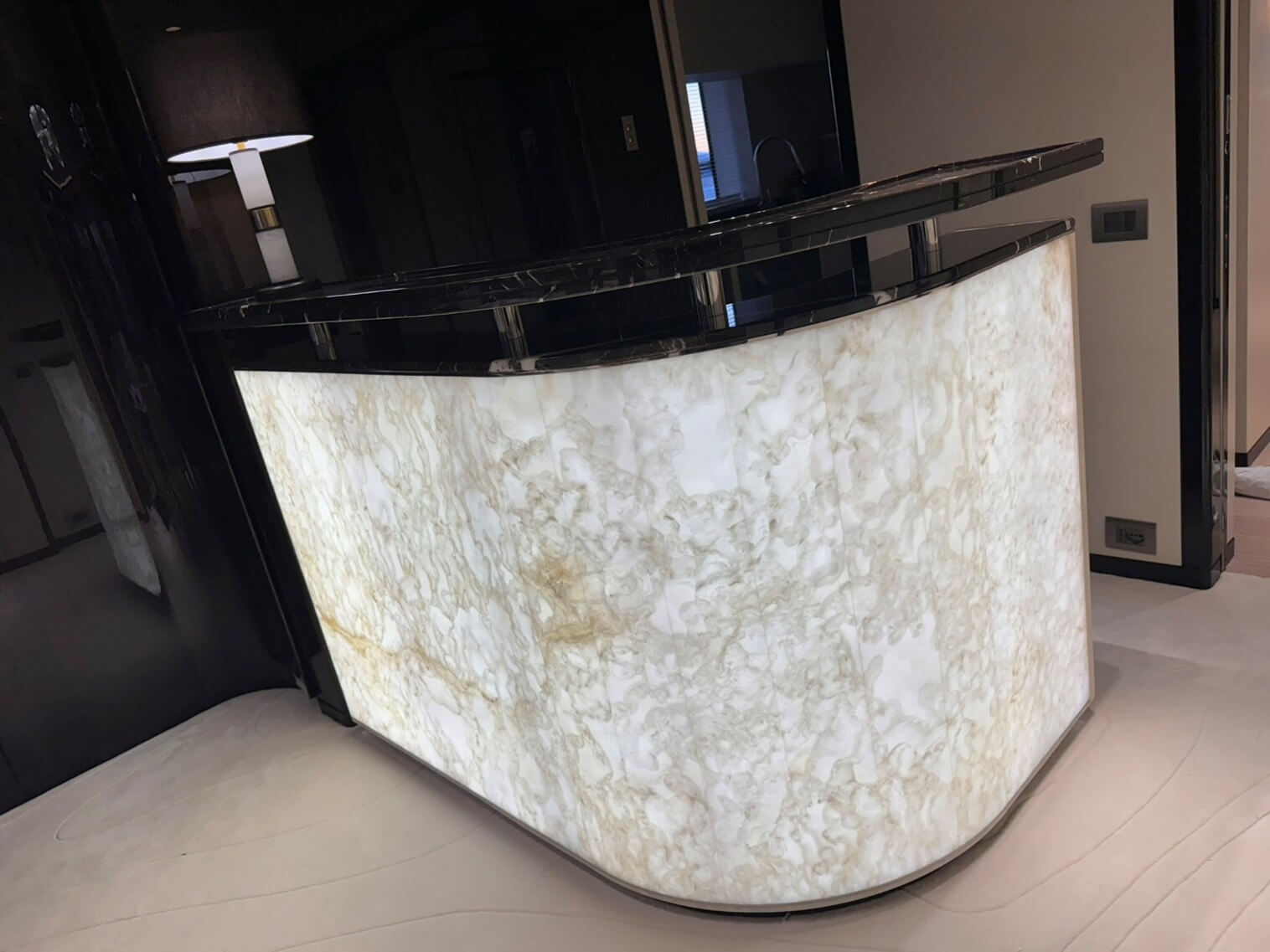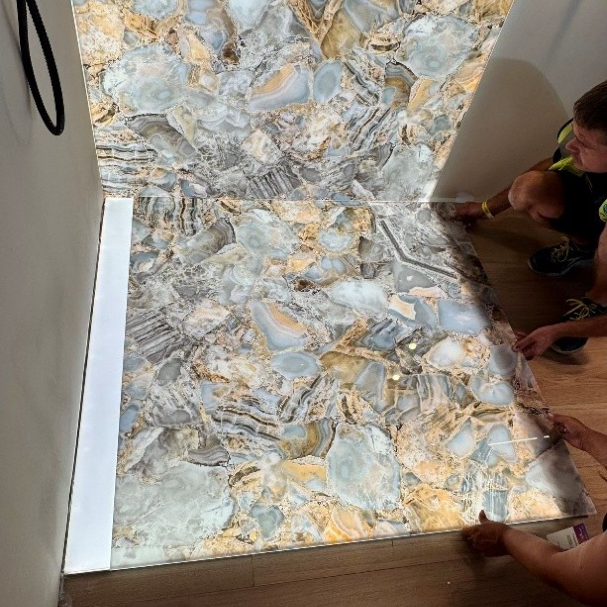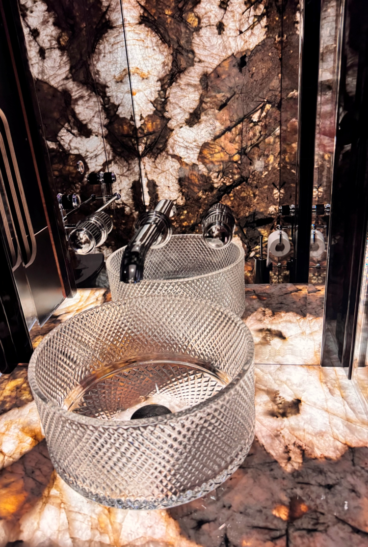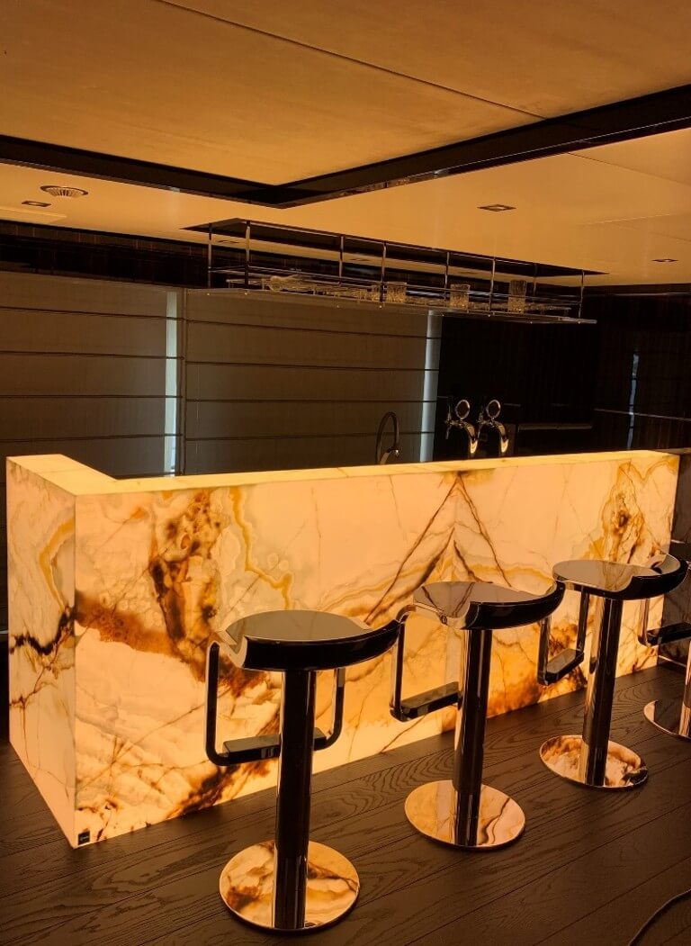 Natural and semi-precious stones such as marble, agate, quartz and onyx, or materials such as glass, decorative wallpaper, artistic mosaics, fabrics, resins and the like, are brought to life by light that passes through them, revealing their most hidden soul.