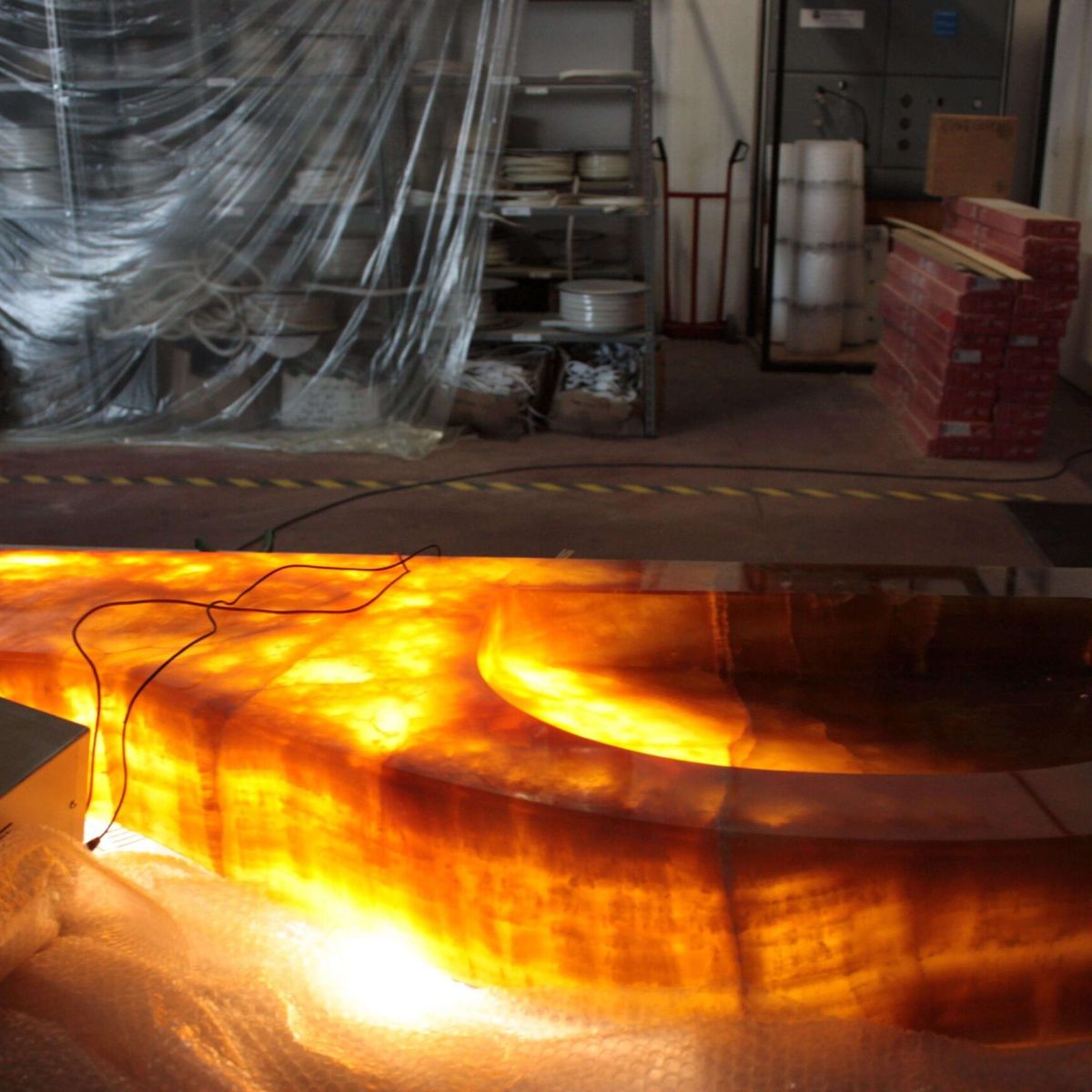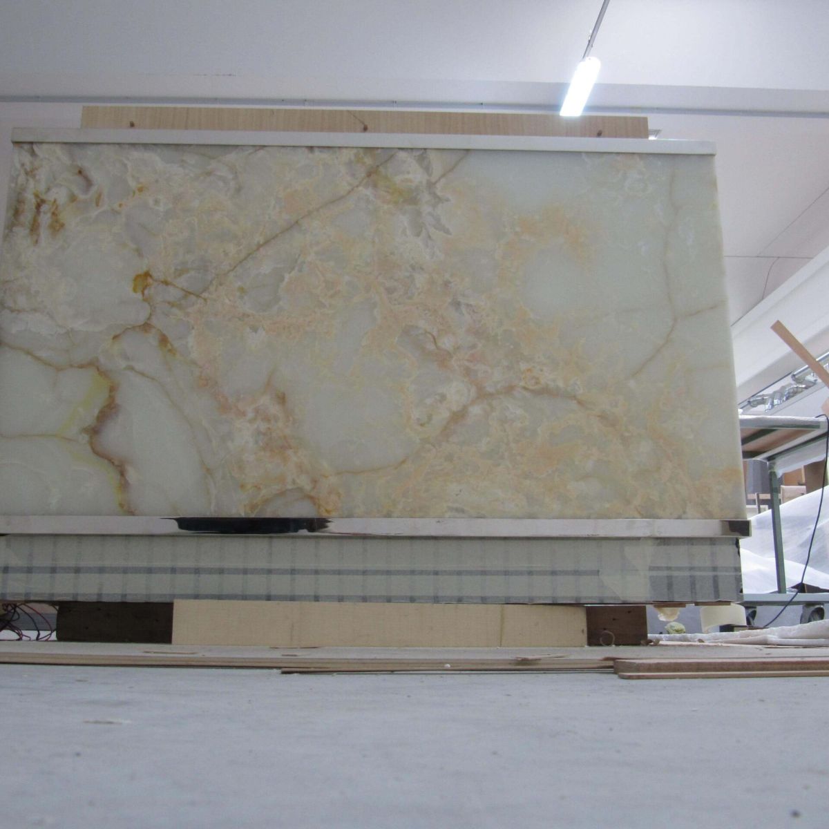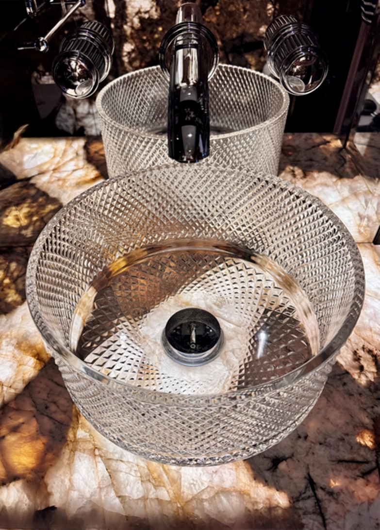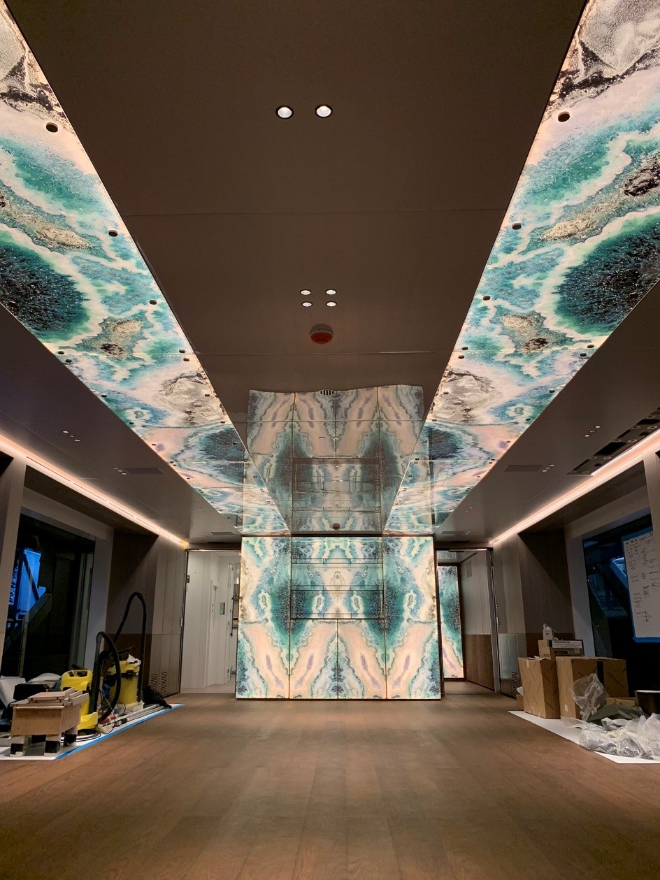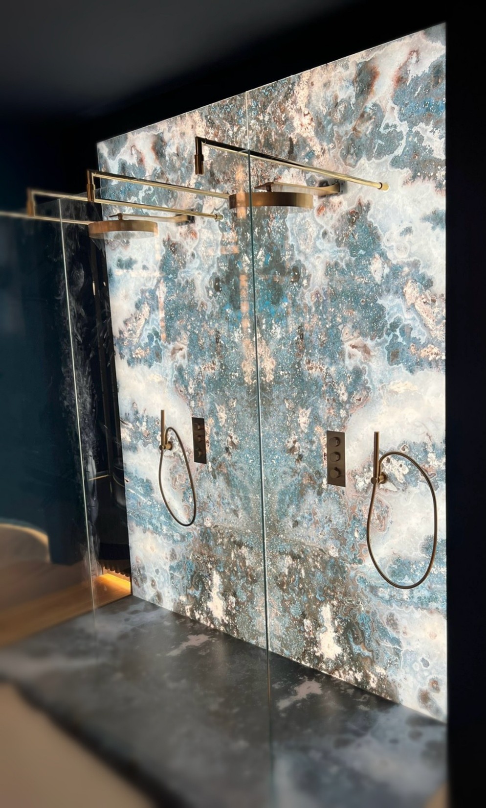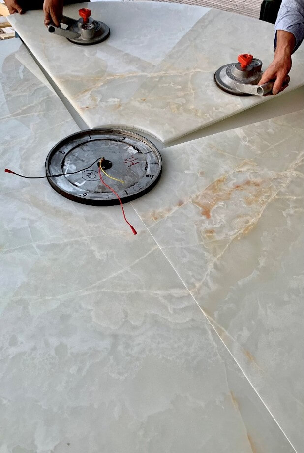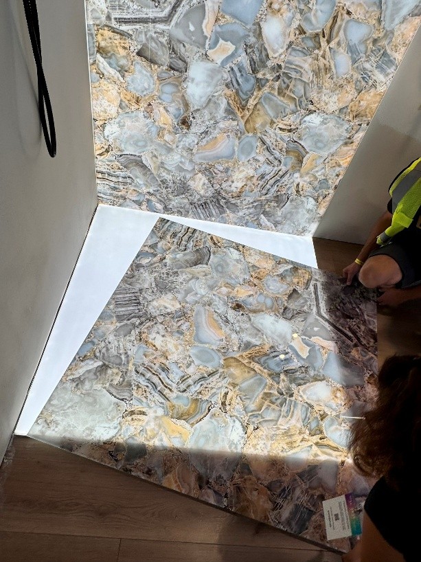 Natural and semi-precious stones such as marble, agate, quartz and onyx, or materials such as glass, decorative wallpaper, artistic mosaics, fabrics, resins and the like, are brought to life by light that passes through them, revealing their most hidden soul.