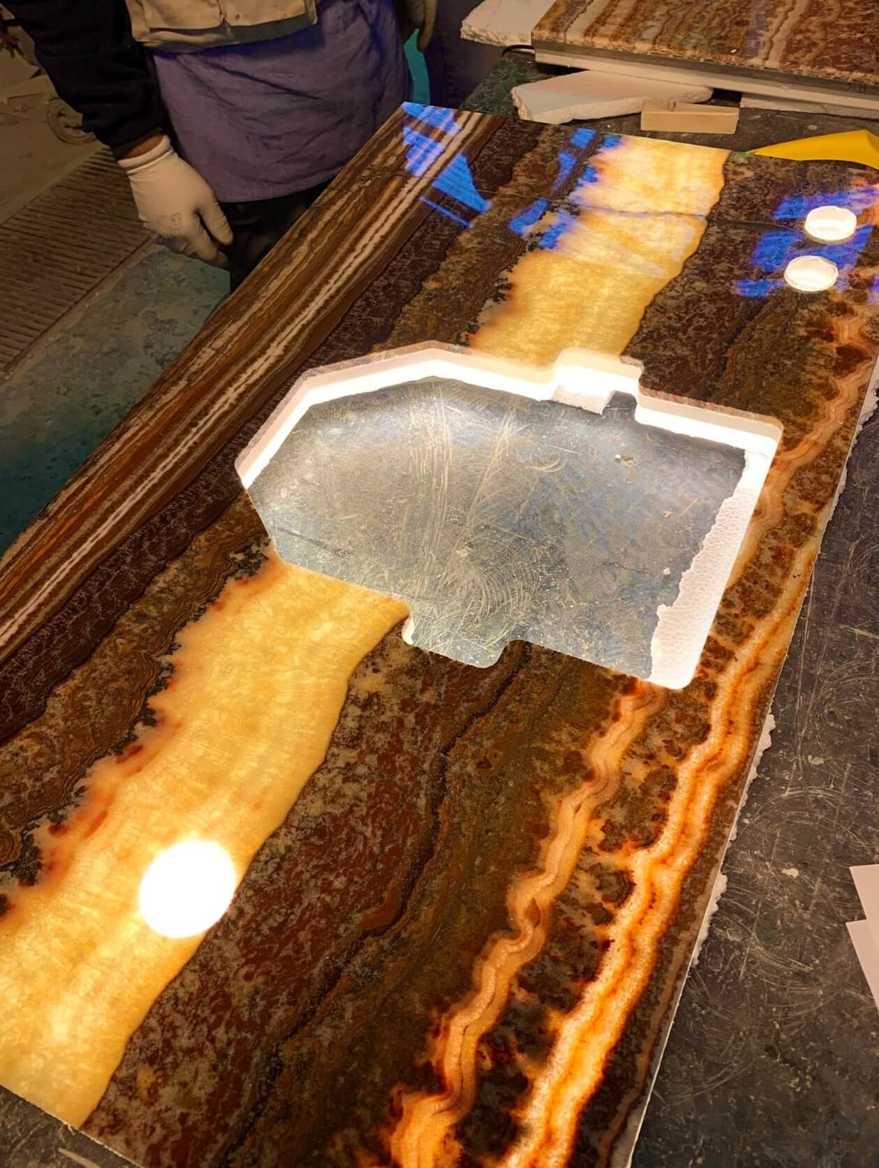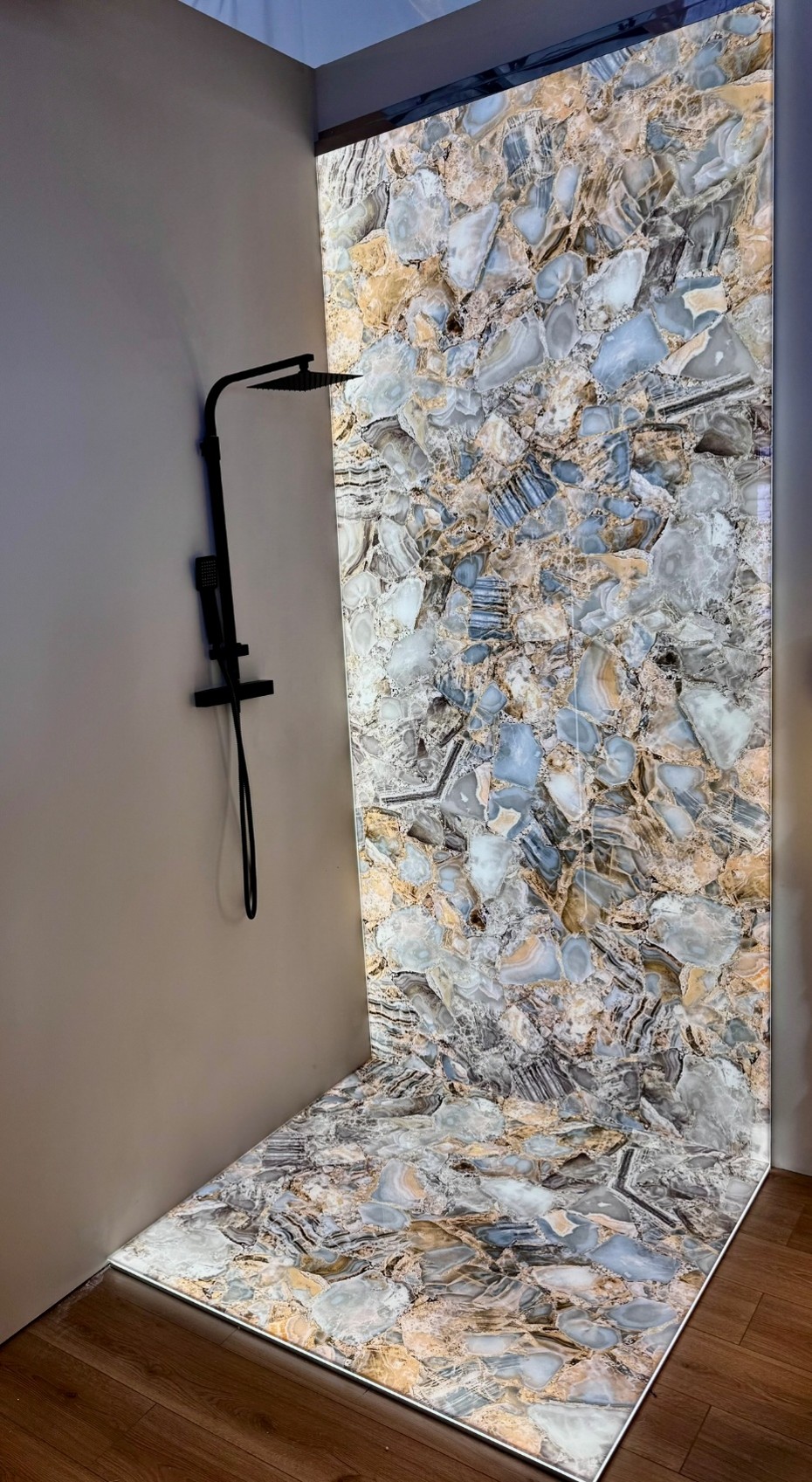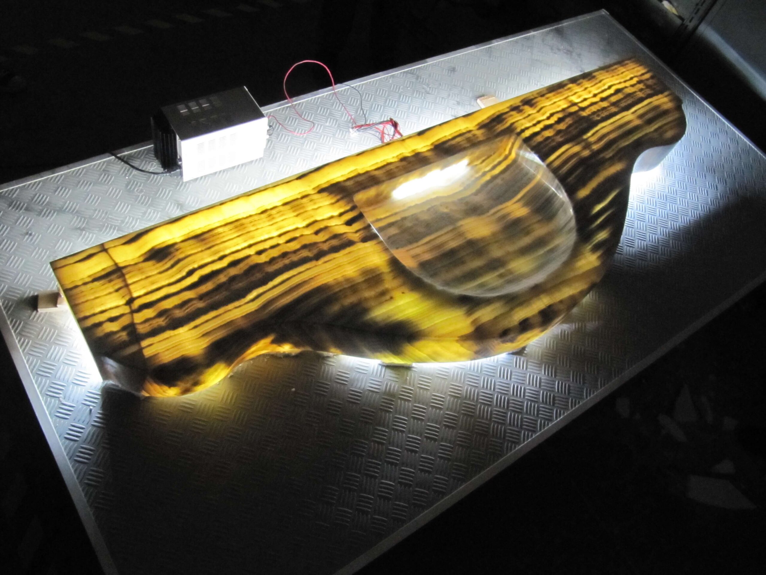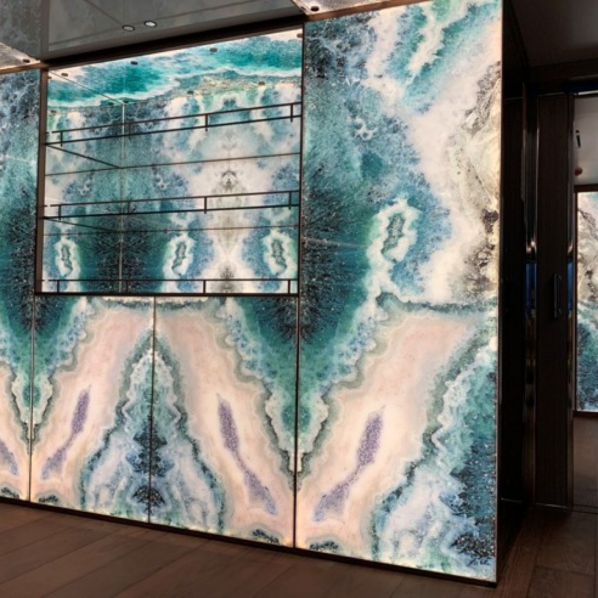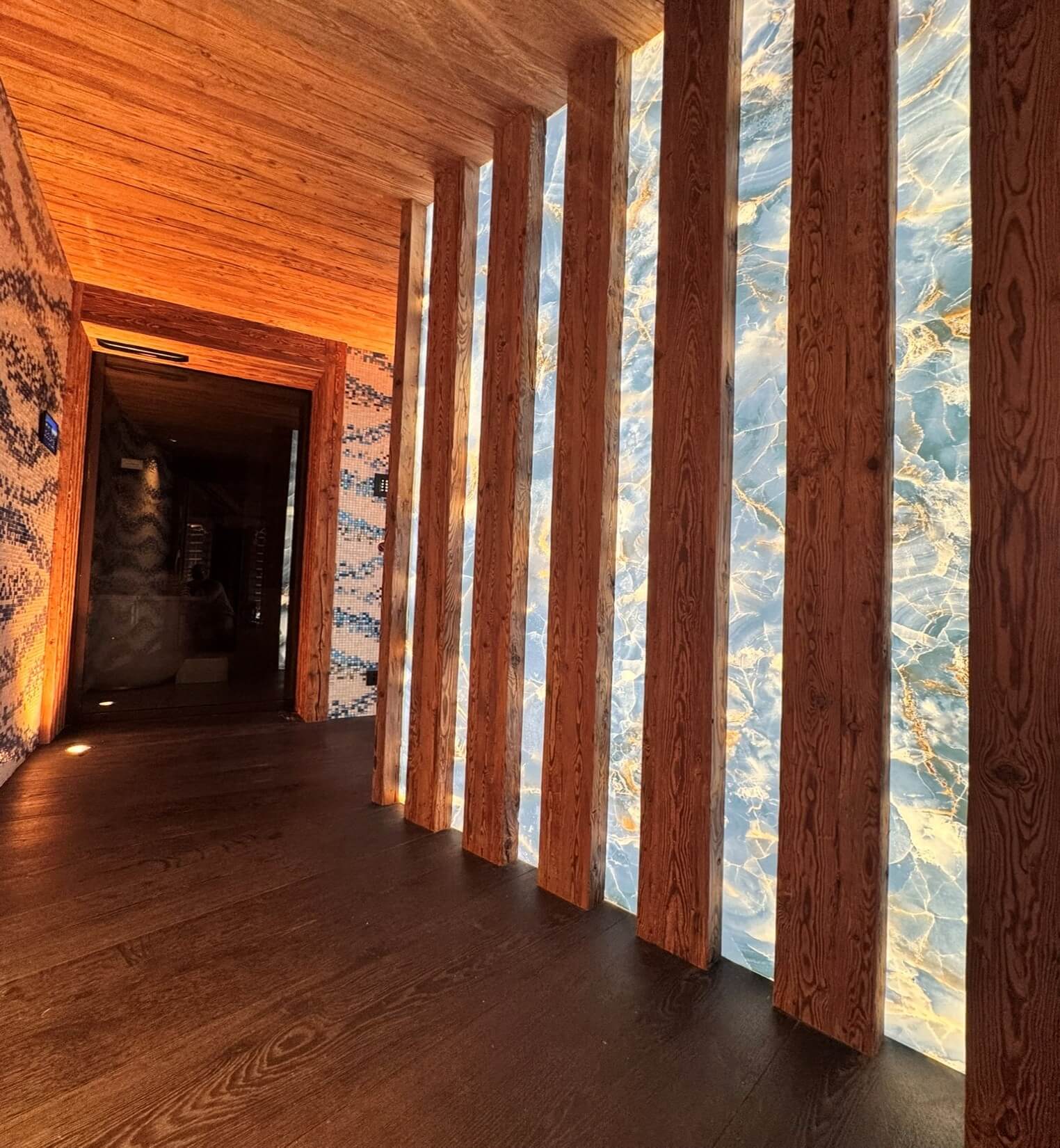 Natural and semi-precious stones such as marble, agate, quartz and onyx, or materials such as glass, decorative wallpaper, artistic mosaics, fabrics, resins and the like, are brought to life by light that passes through them, revealing their most hidden soul.