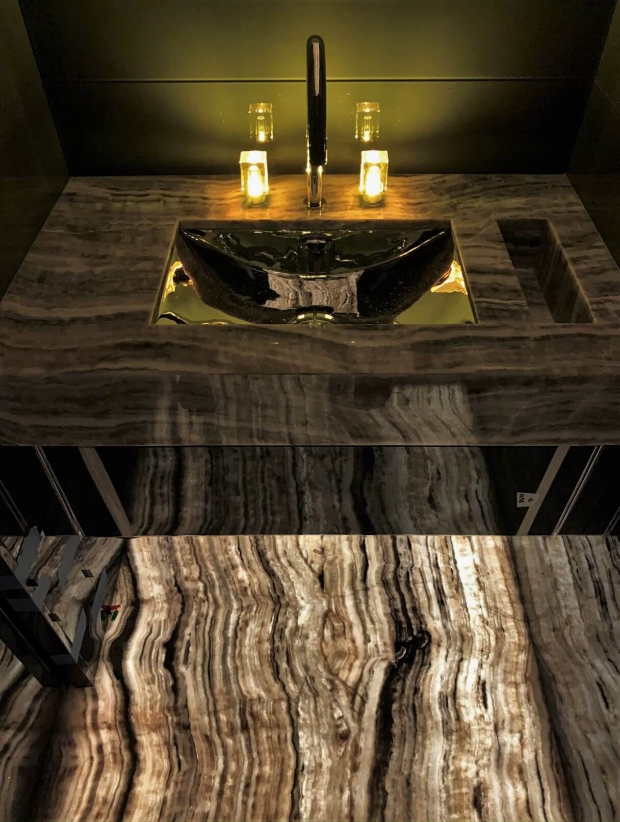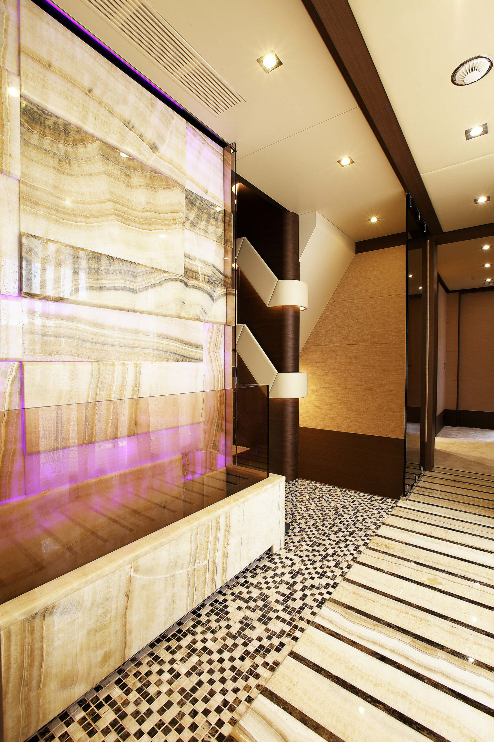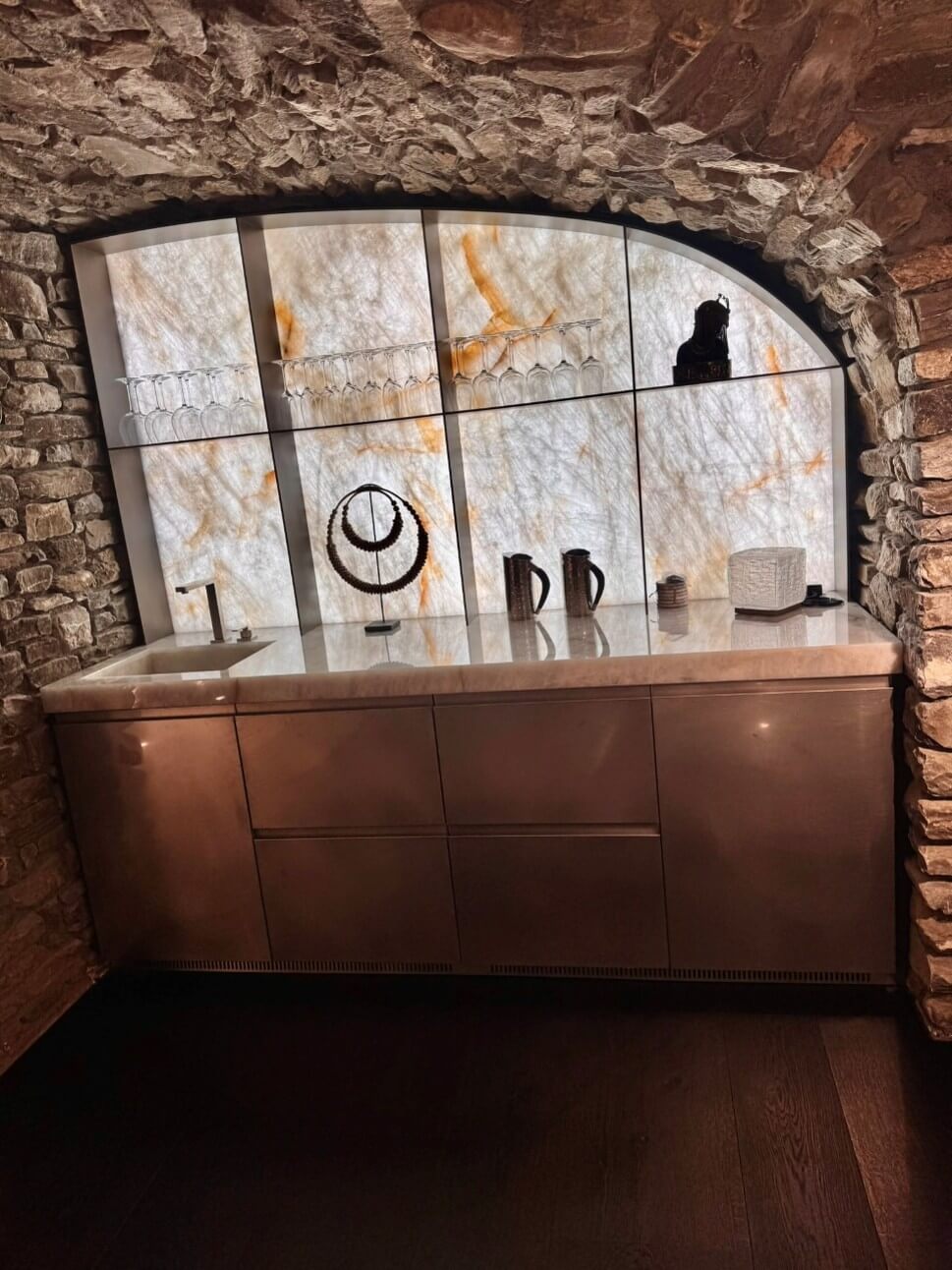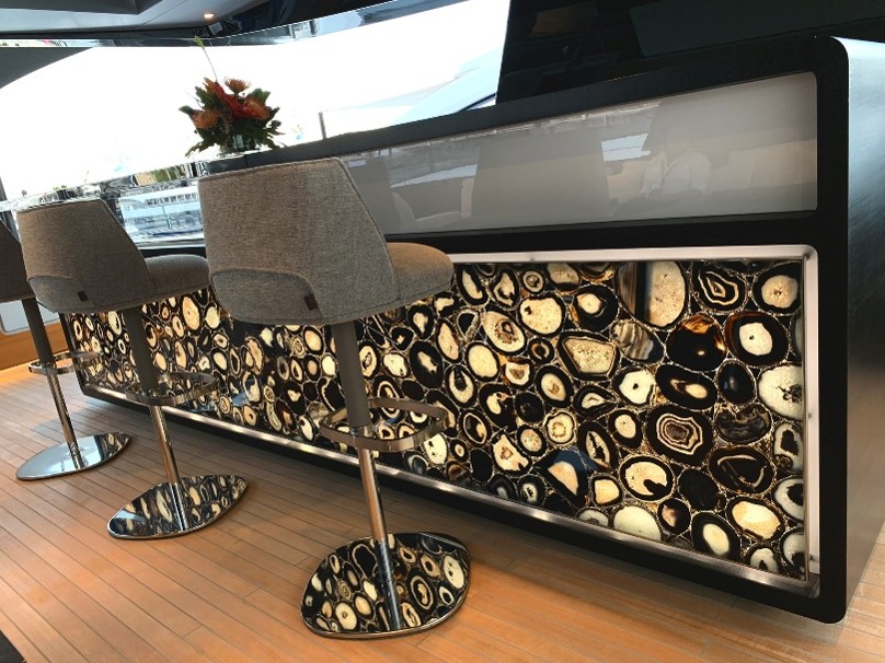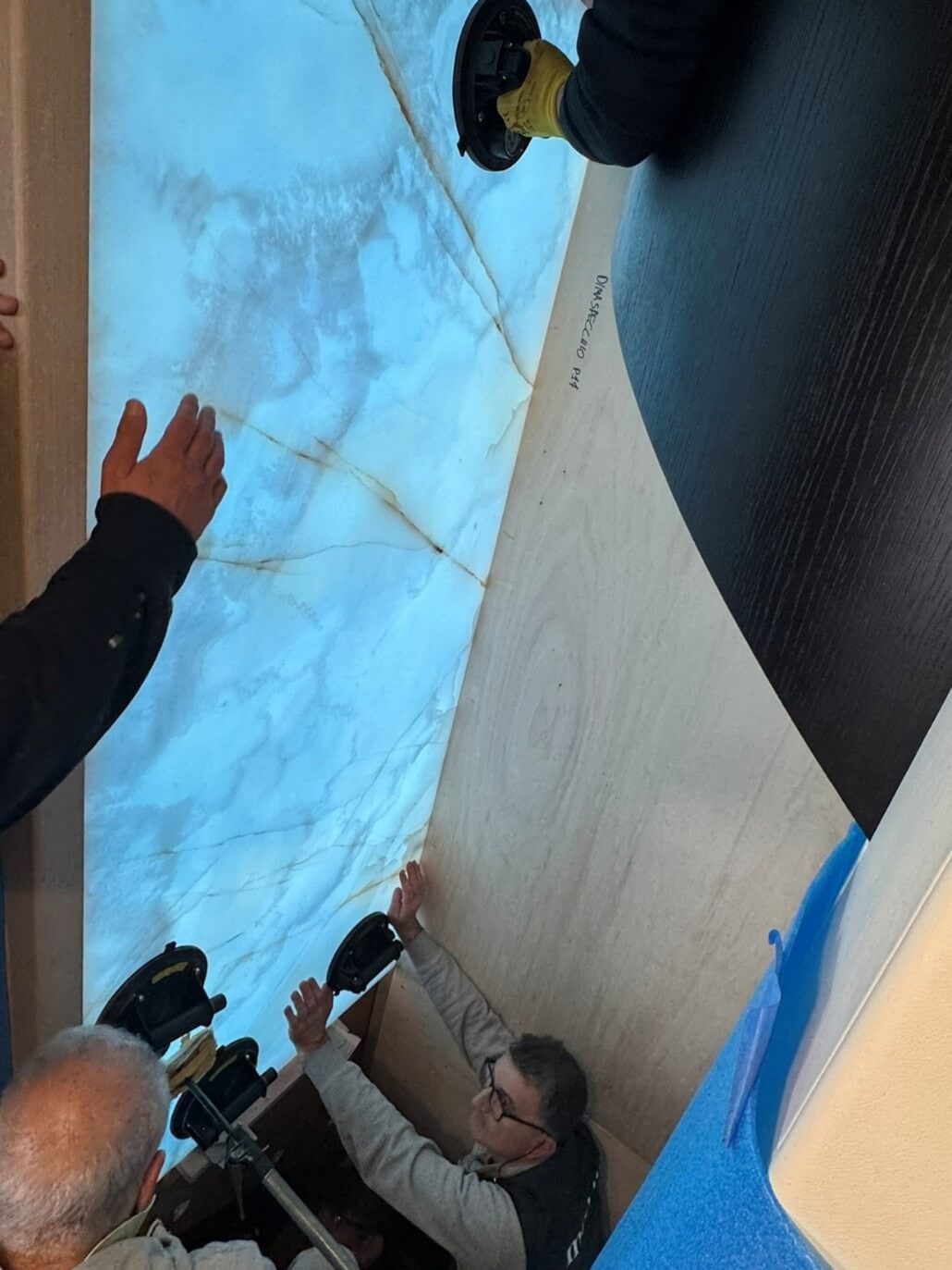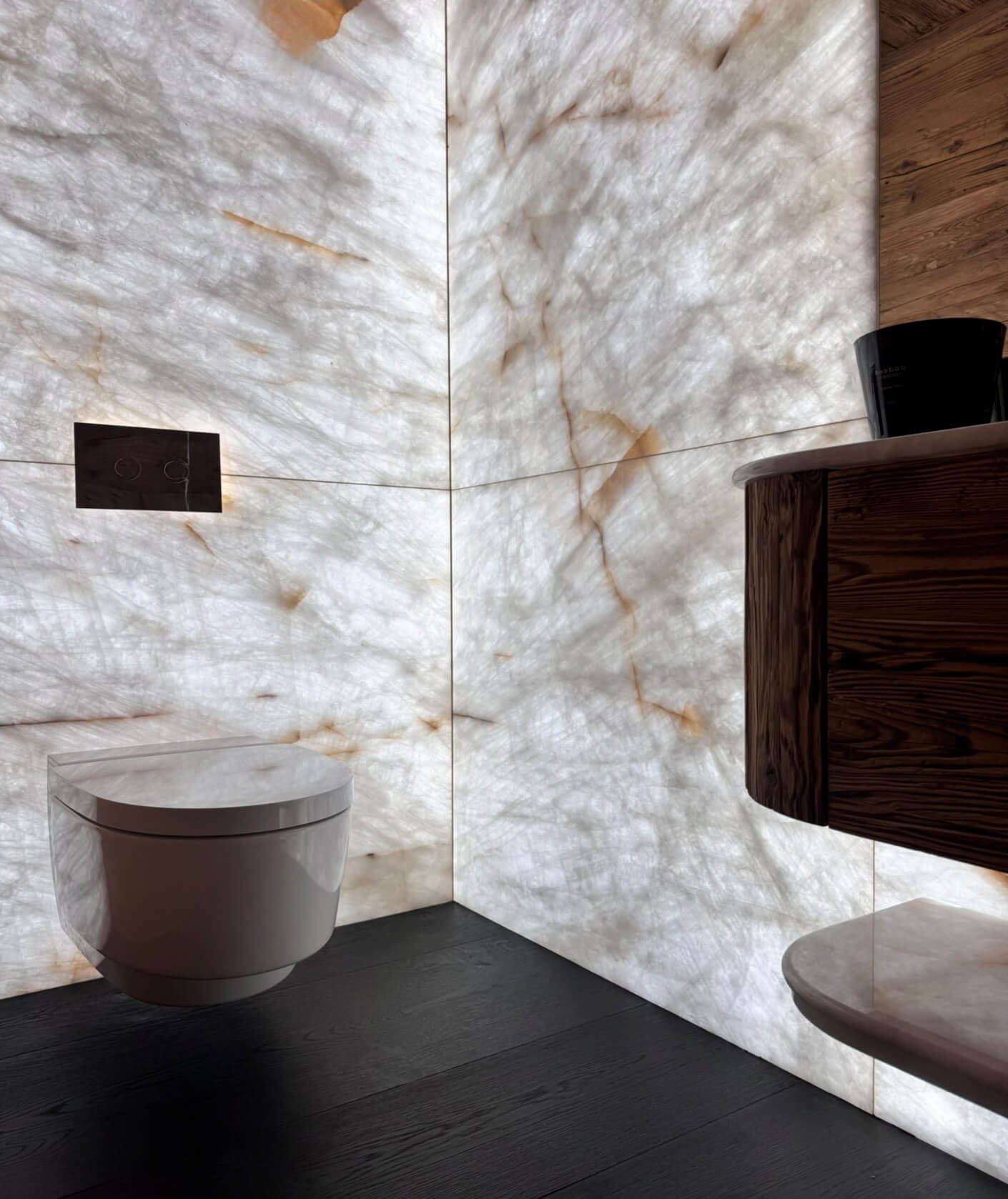 Natural and semi-precious stones such as marble, agate, quartz and onyx, or materials such as glass, decorative wallpaper, artistic mosaics, fabrics, resins and the like, are brought to life by light that passes through them, revealing their most hidden soul.