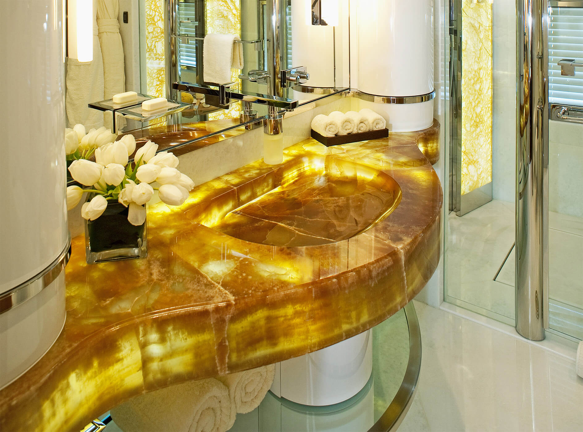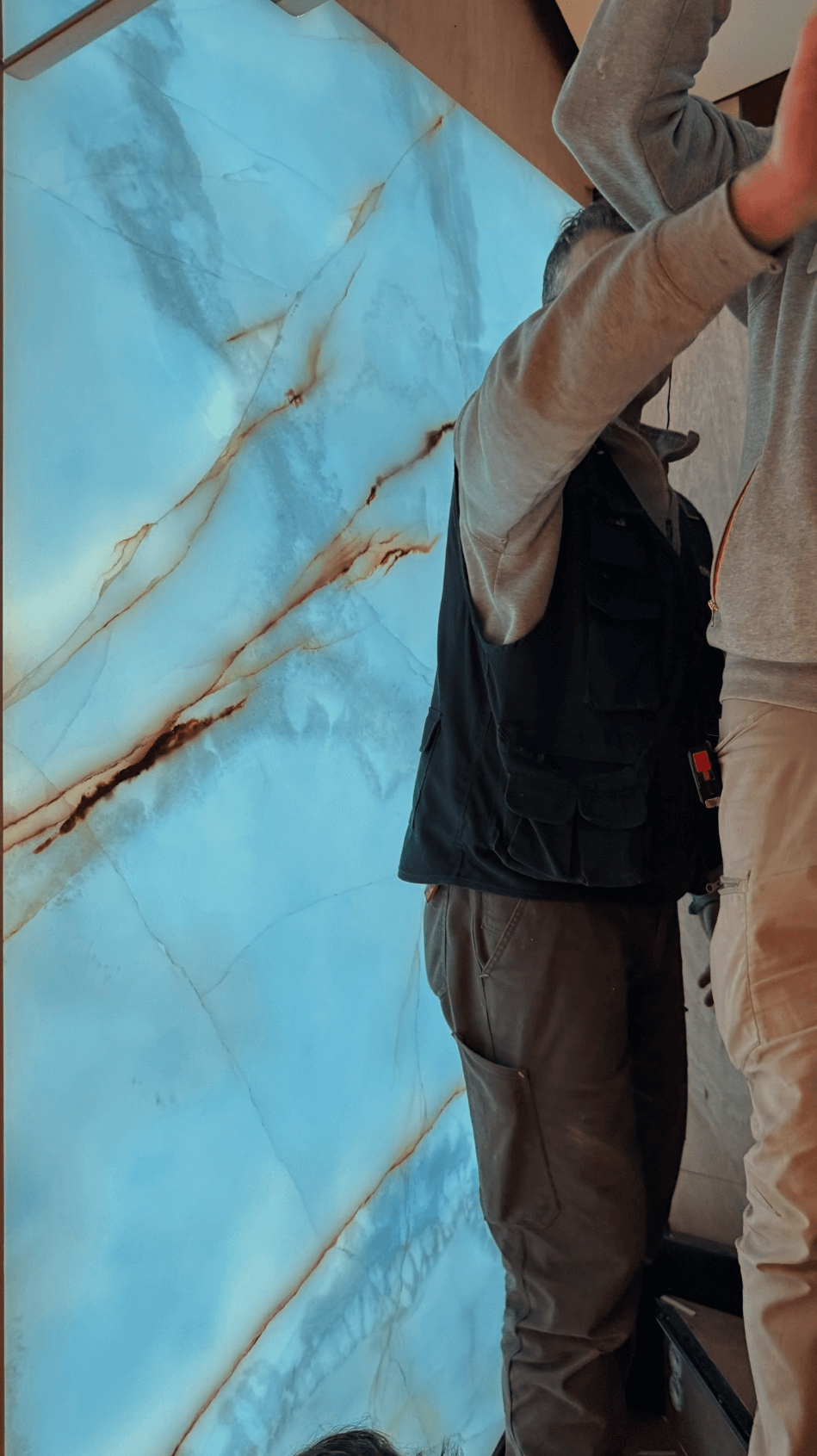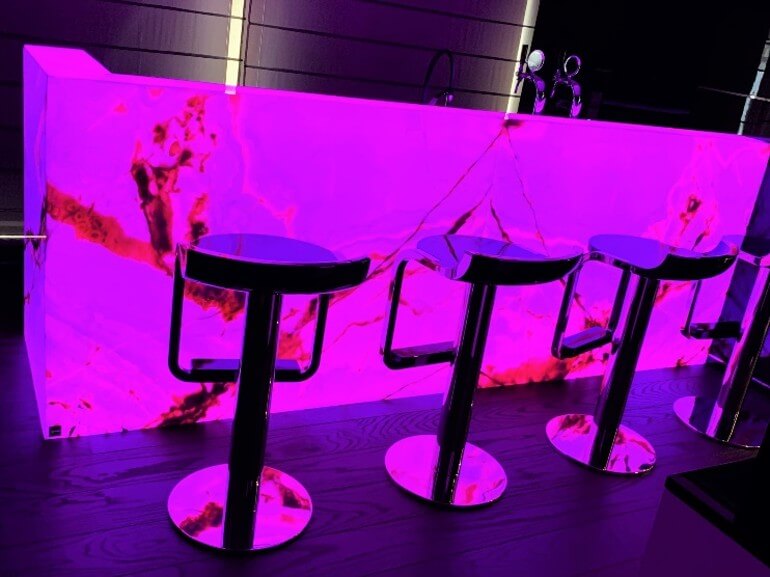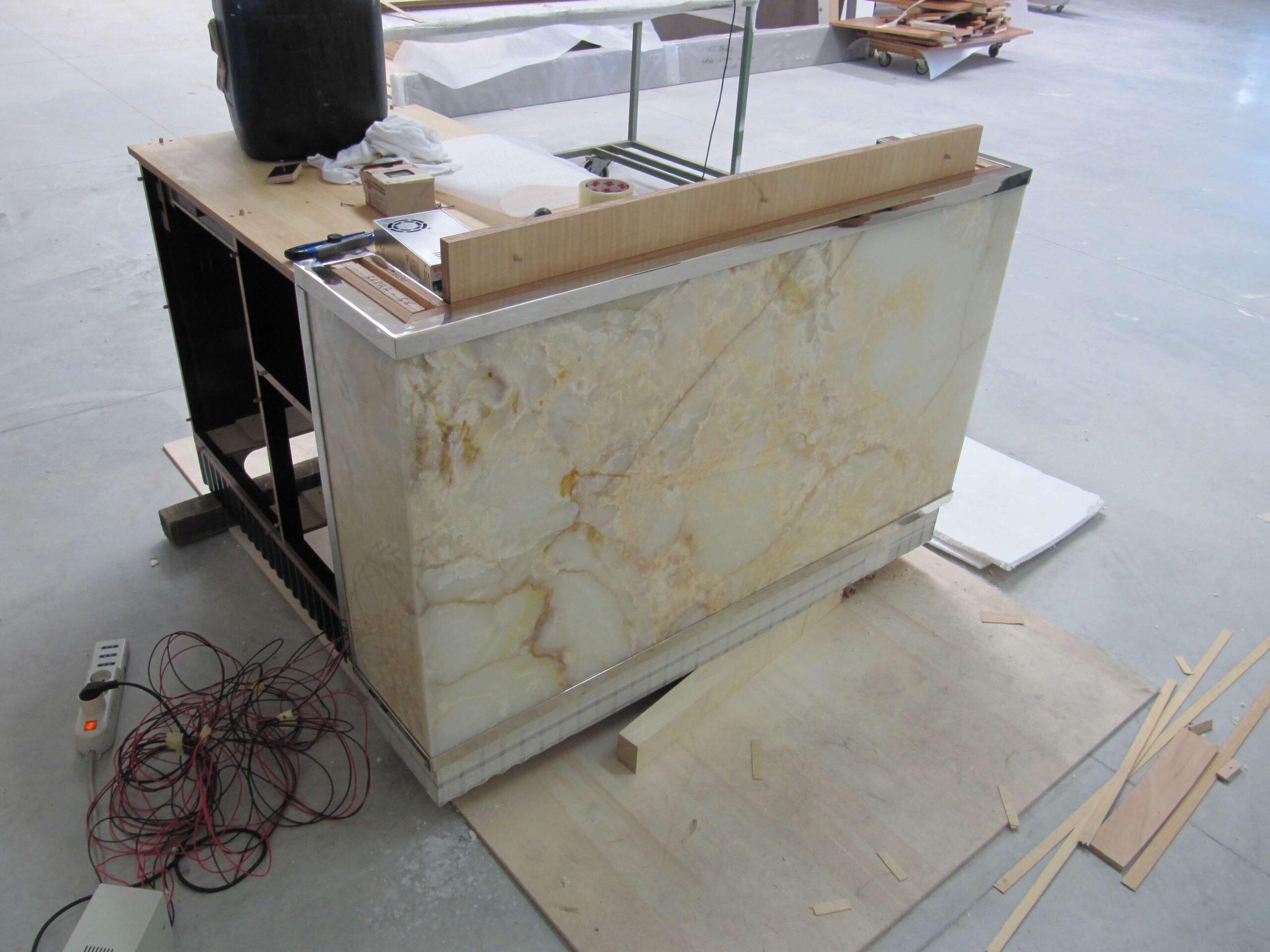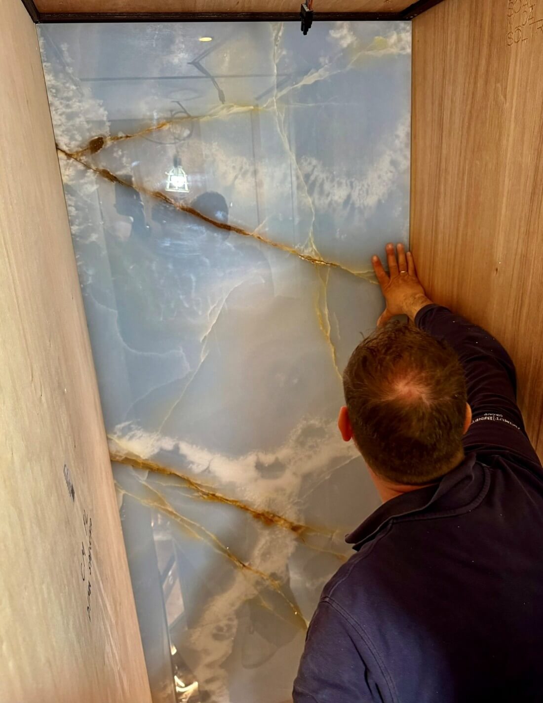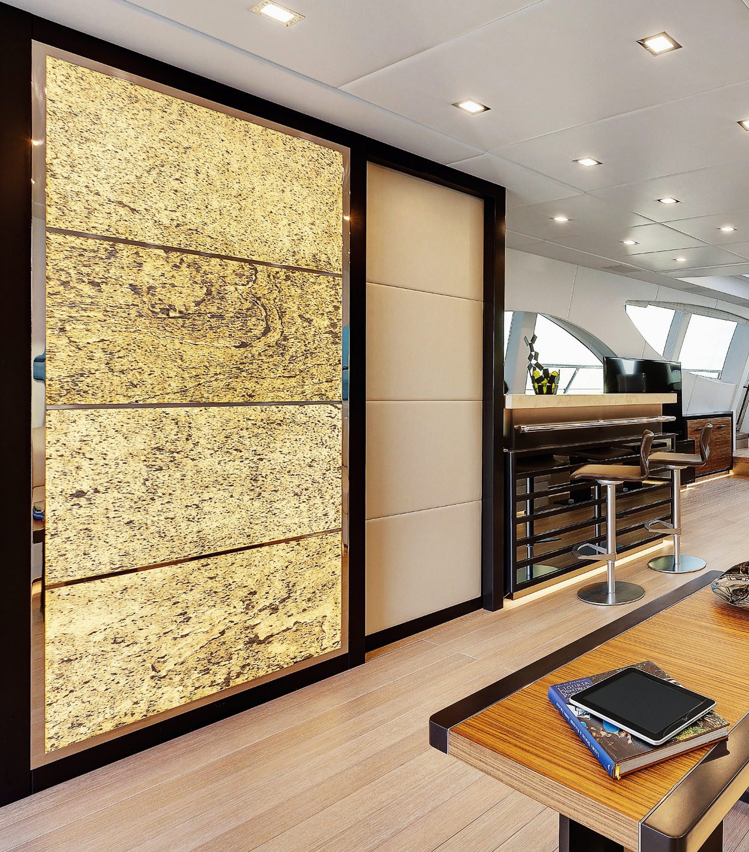 Natural and semi-precious stones such as marble, agate, quartz and onyx, or materials such as glass, decorative wallpaper, artistic mosaics, fabrics, resins and the like, are brought to life by light that passes through them, revealing their most hidden soul.