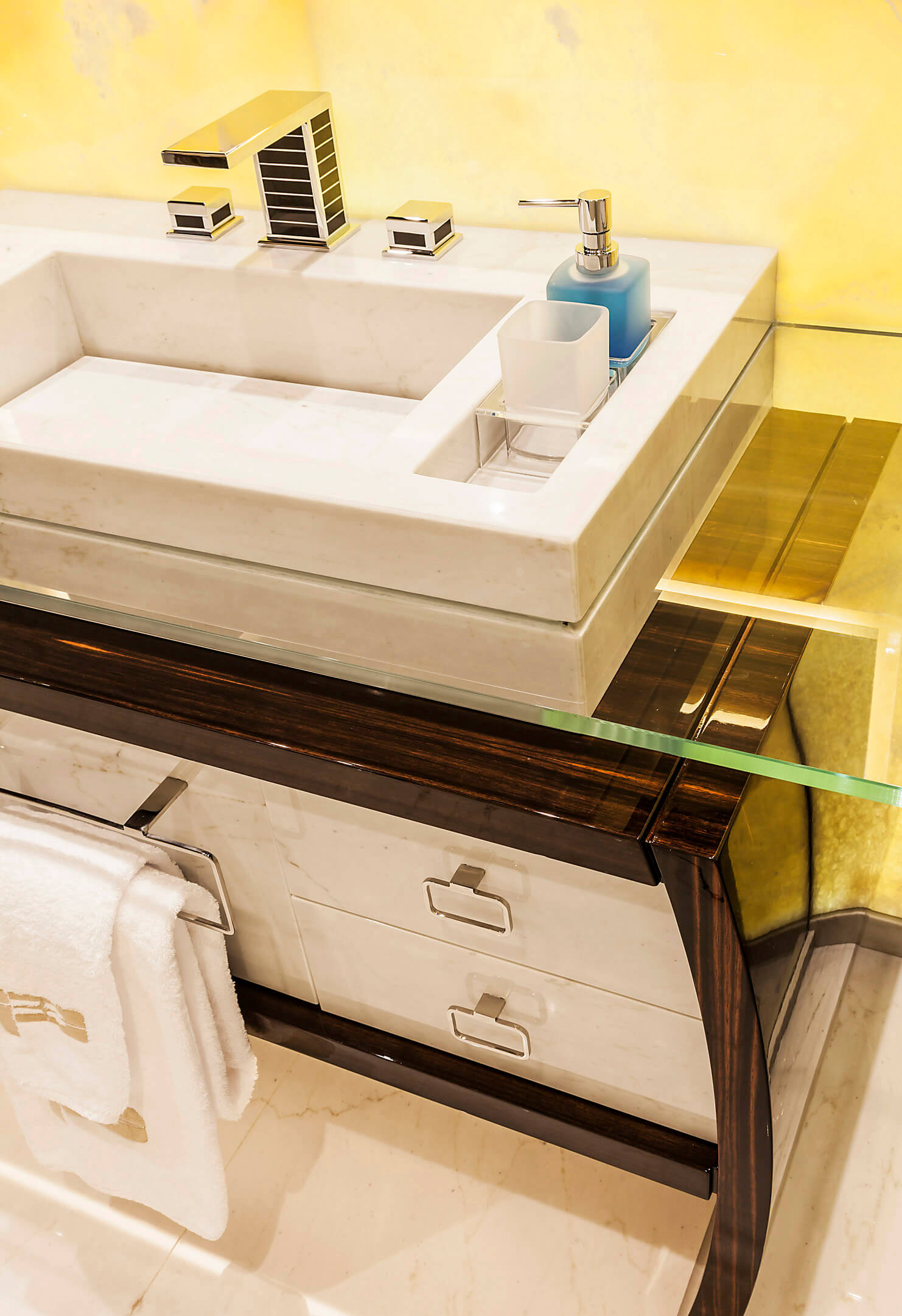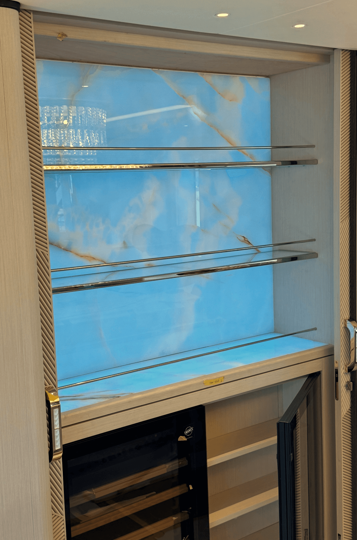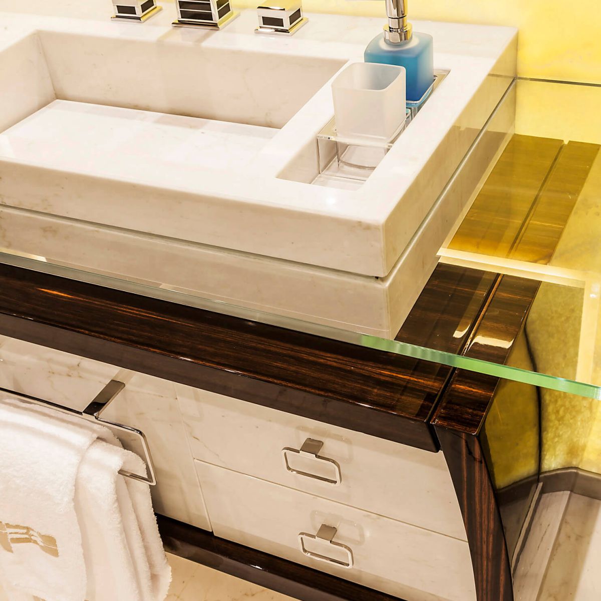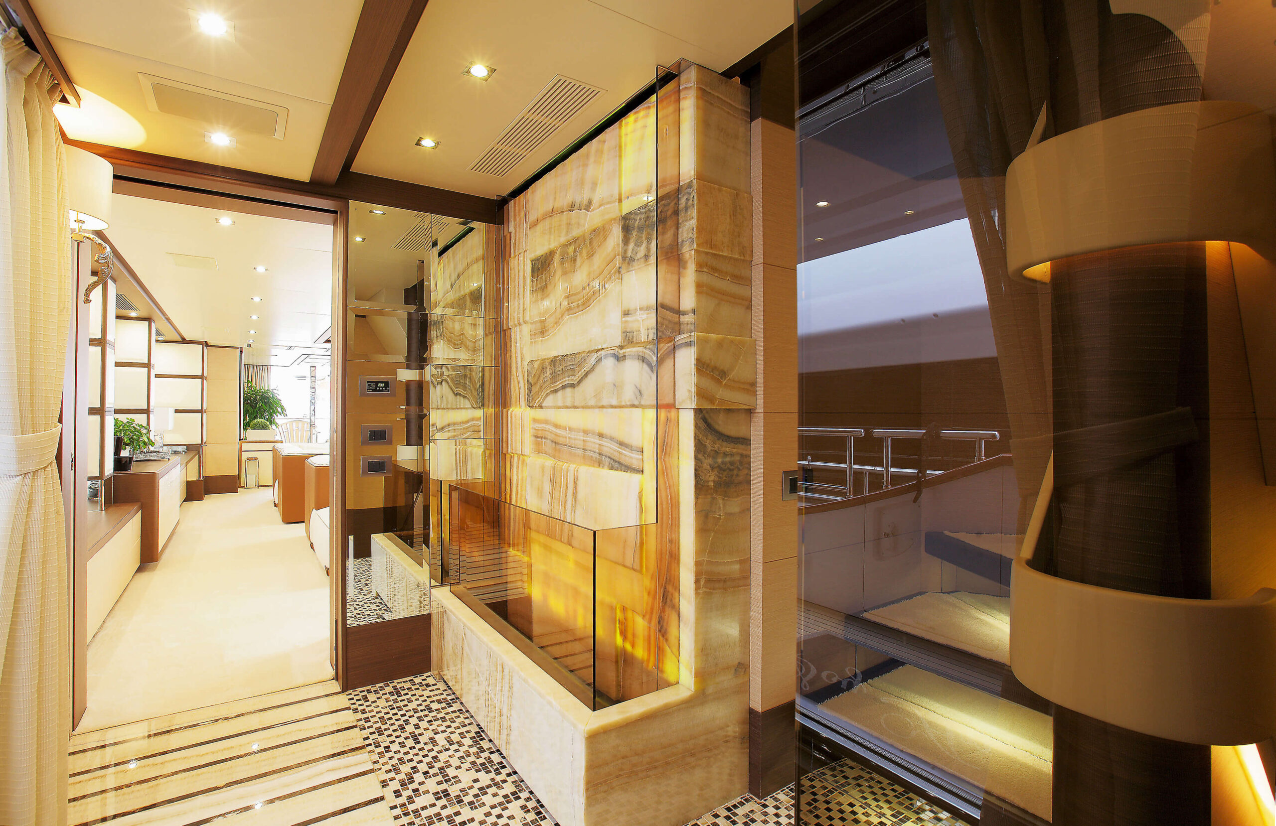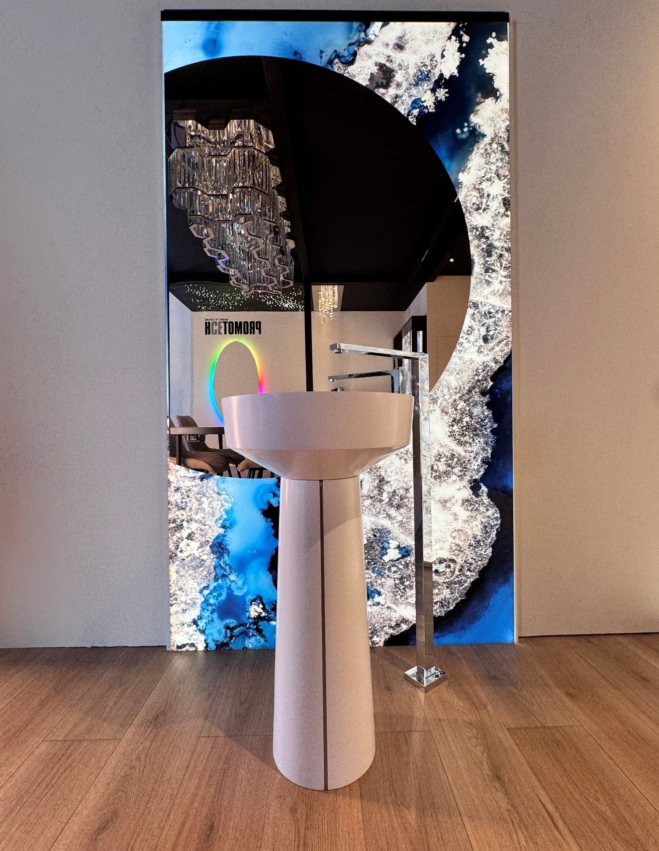 Natural and semi-precious stones such as marble, agate, quartz and onyx, or materials such as glass, decorative wallpaper, artistic mosaics, fabrics, resins and the like, are brought to life by light that passes through them, revealing their most hidden soul.