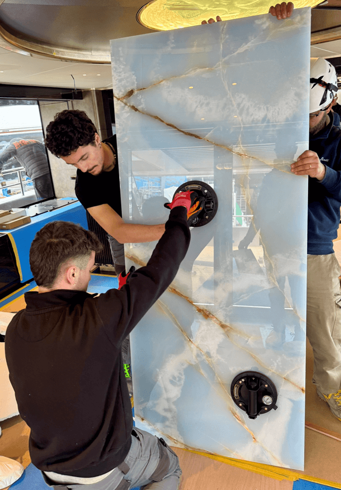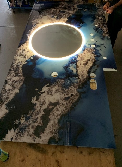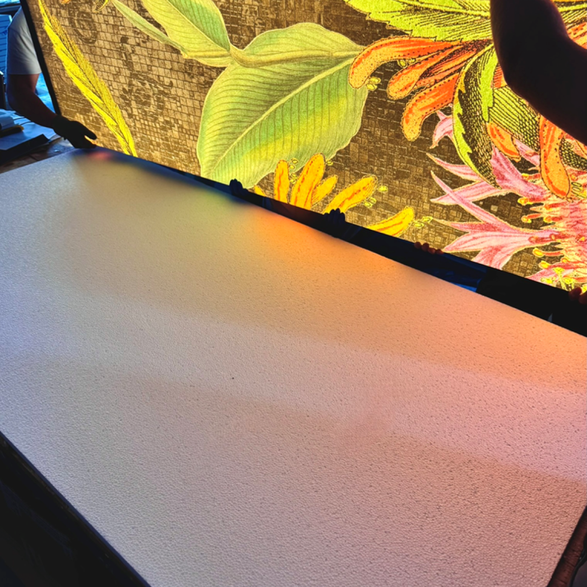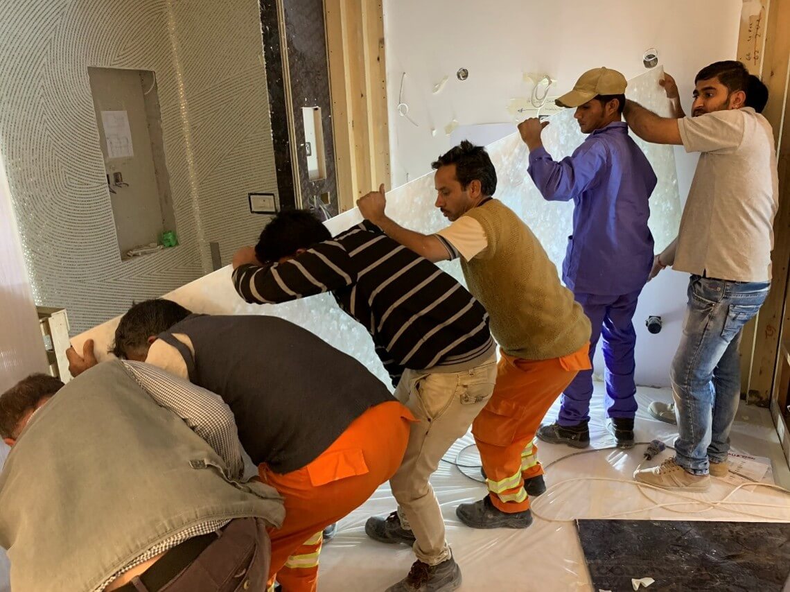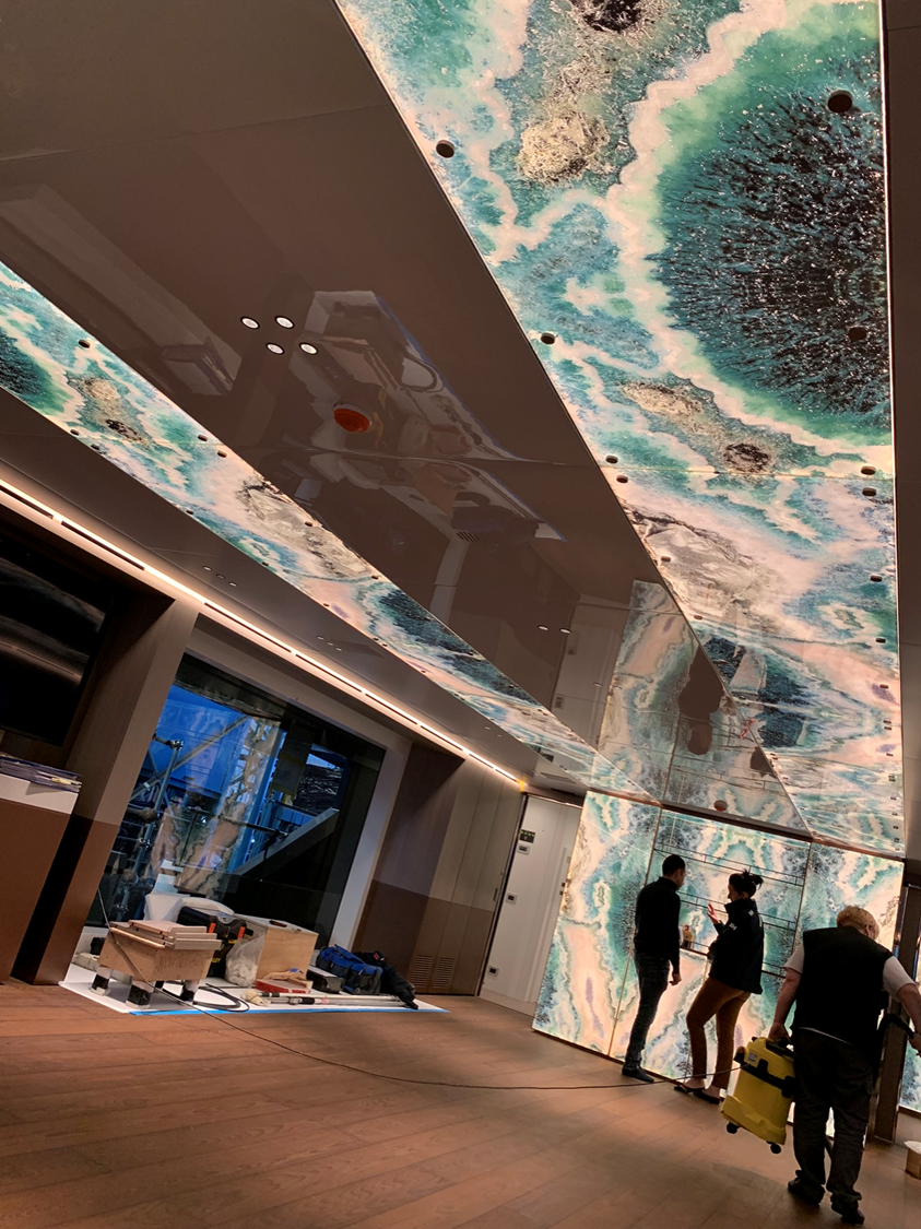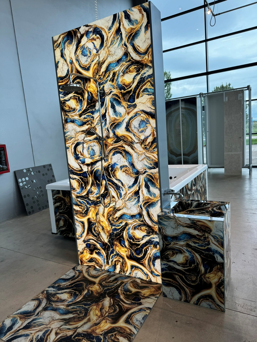 Walls, floors, doors, tables, three-dimensional elements, irregular organic shapes, curved elements, waterproof applications and large surfaces are just some of the requests we are able to satisfy.